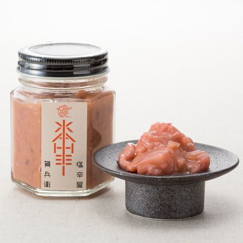 いかの軟骨を塩と肝で熟成しました。コリコリとした食感に腸のコクと旨みが絡みクセになる歯ごたえです。ご飯や酒の肴に最高です。