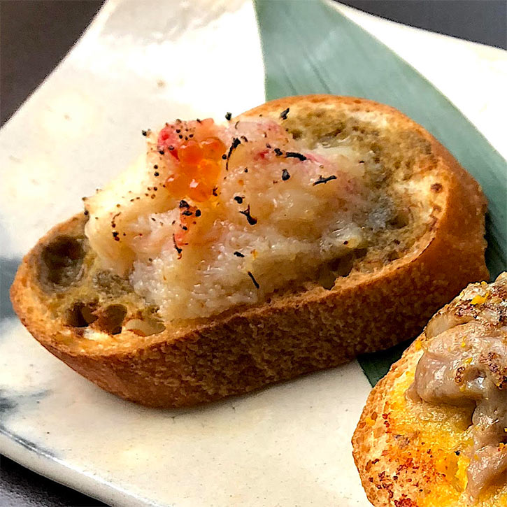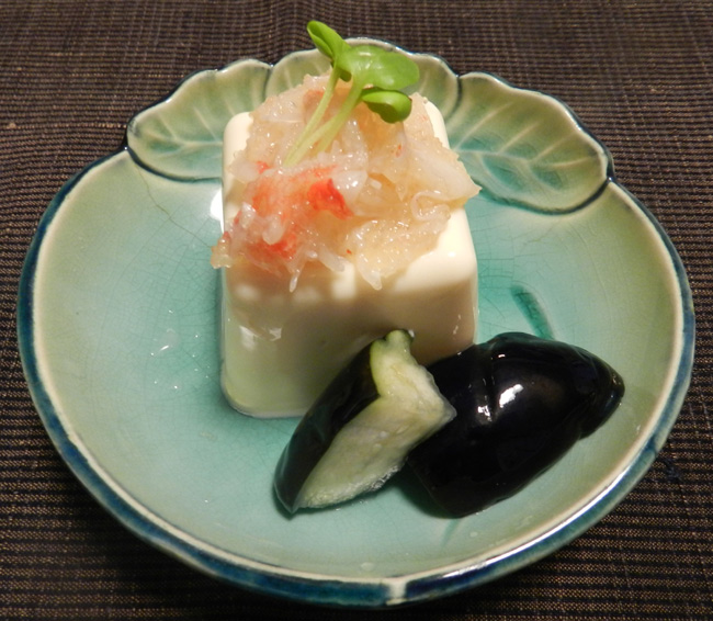 ? 本ずわいがに塩辛の冷奴豆腐を水切りしてお皿に盛る。豆腐の上に本ずわいがに冷奴をのせて完成。 |