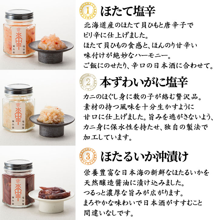 オーイシマサヨシさんが選んだごはんがすすむ塩辛ベスト3を送料無料セットでお届け!
