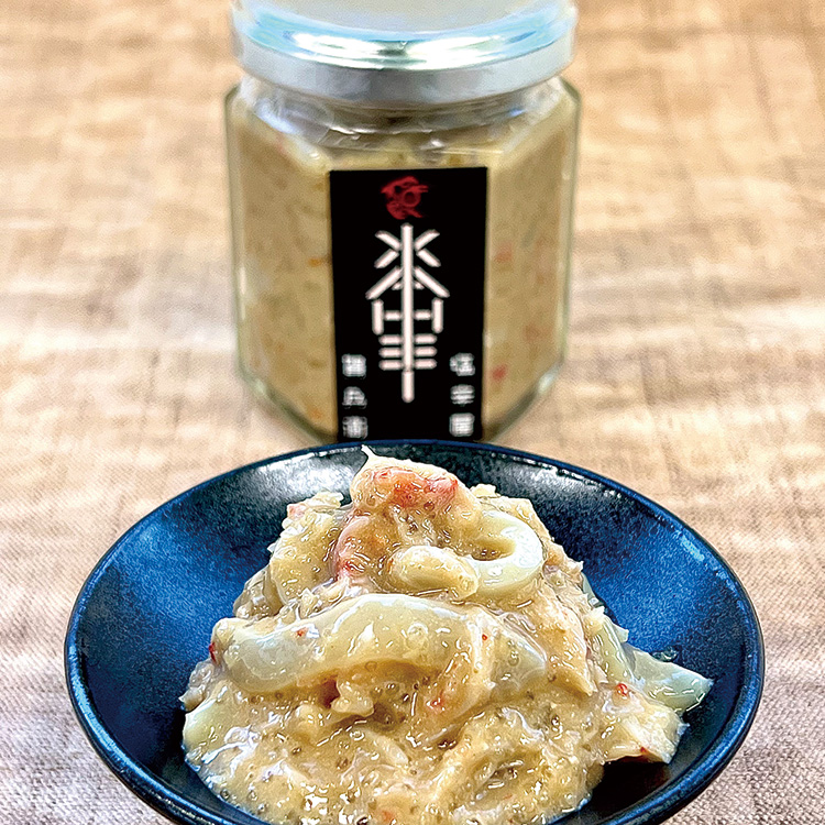 当店の塩辛人気ナンバーワン、かに千歳蟹味噌いか白造り