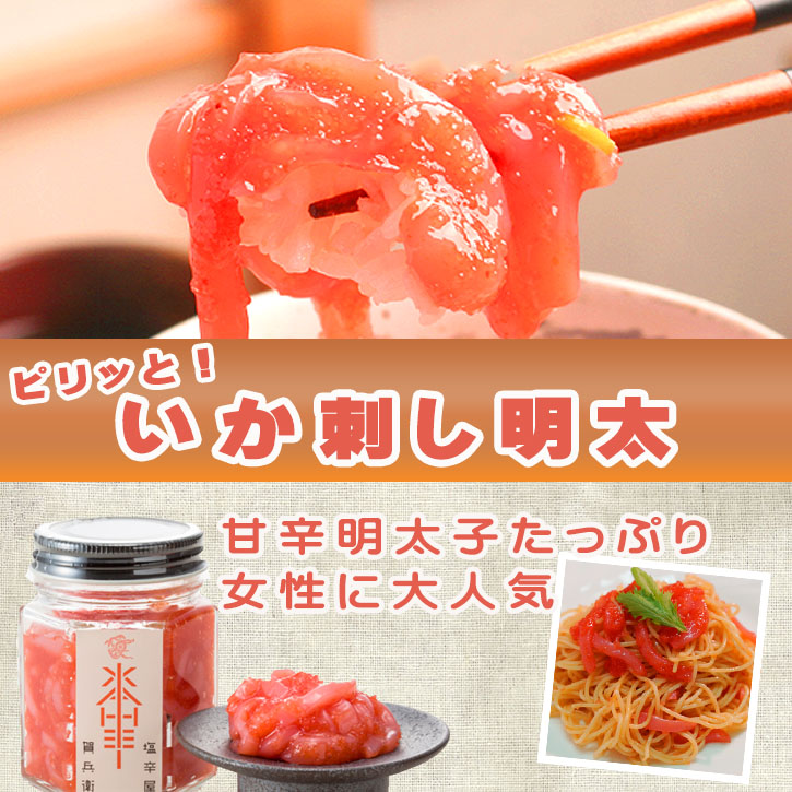 唐辛子のぴりりとした辛さと、明太のプチプチ食感が、いかにぴったり。ご飯のお供や、パスタに和えてもおいしく食べられます。