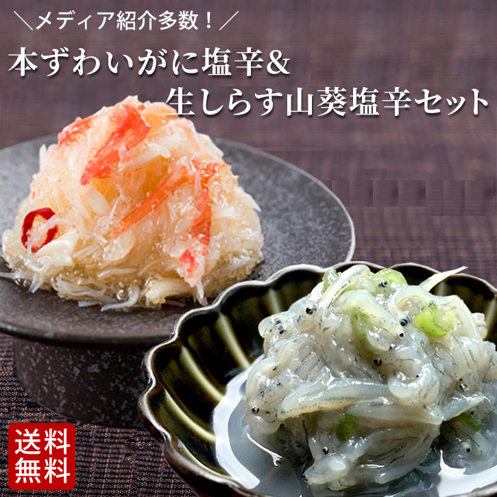 《生しらす山葵塩辛・本ずわい蟹塩辛セット》送料込