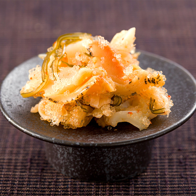 味の染みた北海道産つぶ貝に、数の子が食感のアクセント。