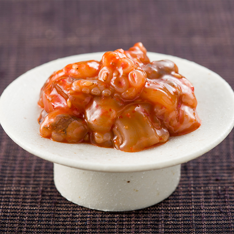 タコの食感に唐辛子と胡麻油がマッチ。後引く味でヤミツキに。御飯、晩酌に。