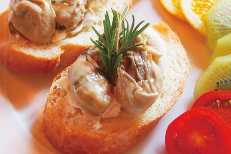 ②その上に牡蠣のオイル漬けを2粒ずつのせる