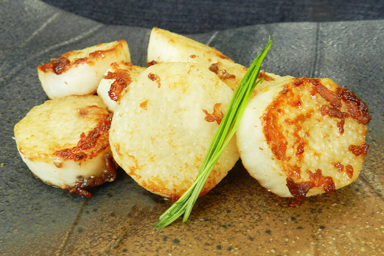 ③フライパンにサラダ油をしき、長芋に焦げ目が付くまで両面を焼く